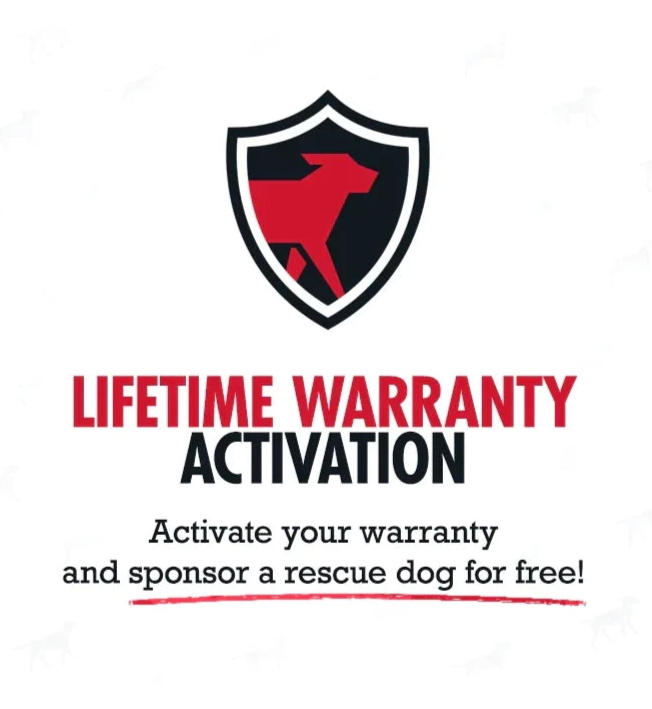 Get additional benefits by activating your Lifetime Warranty. It's not just the fact that you are sponsoring a rescue dog, it's that you will be the first to know about our giveaways and more!