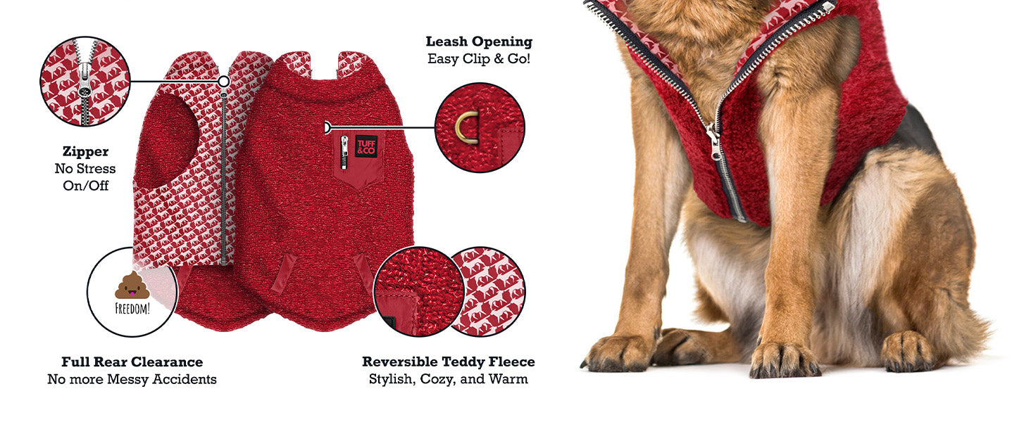 • Reversible 2-in-1 Design – Switch between cozy teddy fleece and a stylish Tuff Pupper pattern for versatile looks.